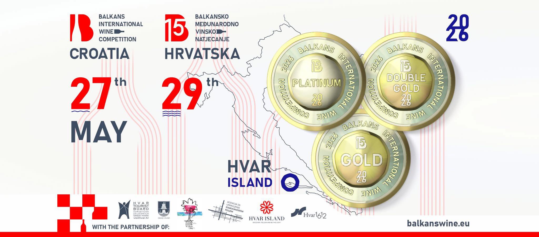 Ostrvo Hvar u Hrvatskoj će od 27-29. maja 2026. biti domaćin petnaestog vinskog ocenjivanja Balkans International Wine Competition, najavili su organizatori ovog velikog nadmetanja koje se svake godine održava u drugoj balkanskoj državi.