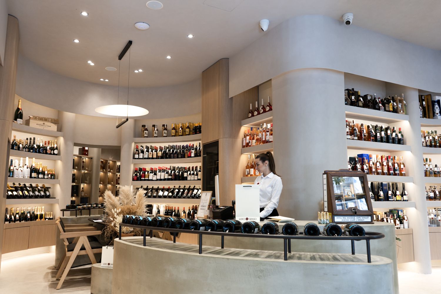 Prostor je ekskluzivan, elegantno uređen i jasno komunicira ideju dolaska po nešto posebno. Pored prodajne funkcije, vinoteka je zamišljena i kao mesto za degustacije, savetovanje i direktnu komunikaciju sa vinskim stručnjacima.