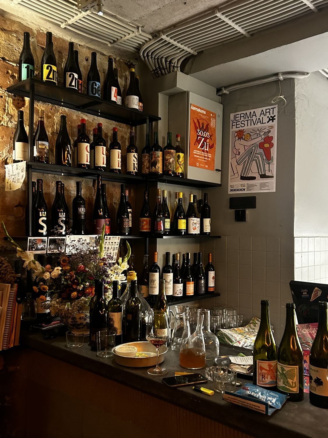 low-intervention vina domaćih vinara, uz manji izbor vina iz Španije i Mađarske.