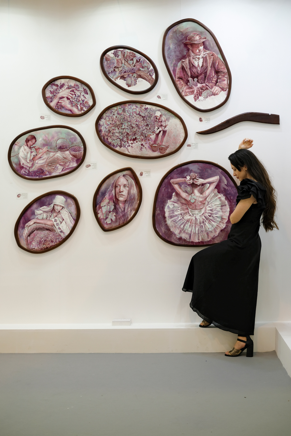 - Dolazim iz Srema, gde se vino podrazumeva, a grožđe buja u svakom dvorištu. Valjda je bilo neizbežno - oduvek sam gledala vinske fleke, a i sama ih pravila. Kada sam prvi put slikala vinom, otvorio se potpuno novi svet: nestalan, nepredvidiv i neverovatno inspirativan. U profesionalnom smislu, tehnika slikanja vinom i dalje je pomalo „autsajder“: umetnici je ne vide kao tradicionalnu, a vinari kao praktičnu. Ali upravo ta sumnja stvara prostor za radoznalost. Ako volite vino, teško je ostati ravnodušan kada ga vidite u ulozi pigmenta. Ta radoznalost dovela me je do projekata širom Evrope, od slikanja uživo u Burgundiji do radionica u Parizu, i podstakla me da zaštitim brend Winerelle i usmerim priču ka vinarima, somelijerima i vinskim profesionalcima. WSET sam završila kako bih bolje razumela aromatske profile i boju vina; u teoriji zbog profesionalnog razvoja, a u praksi zato što sam želela sa nekim da razgovaram o svemu tome. Instruktori su me odmah prebacili na viši nivo i, rekla bih, odlično su se zabavljali što među sobom imaju slikara – priča Sanja.