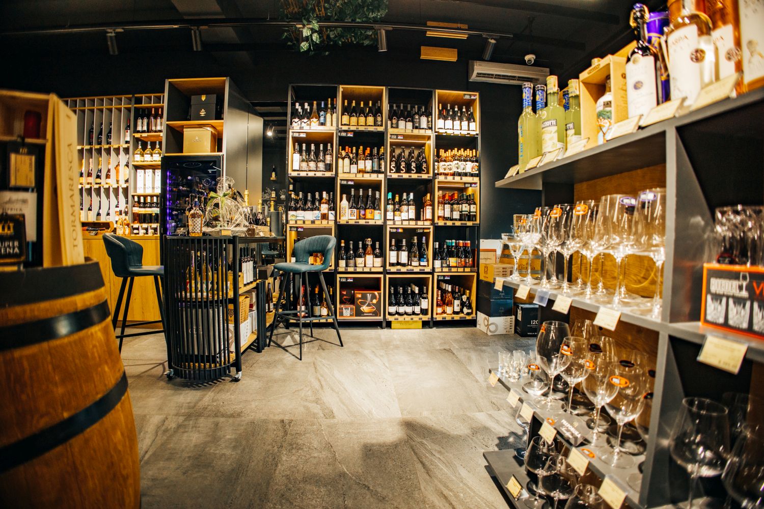 Prostor je ekskluzivan, elegantno uređen i jasno komunicira ideju dolaska po nešto posebno. Pored prodajne funkcije, vinoteka je zamišljena i kao mesto za degustacije, savetovanje i direktnu komunikaciju sa vinskim stručnjacima.