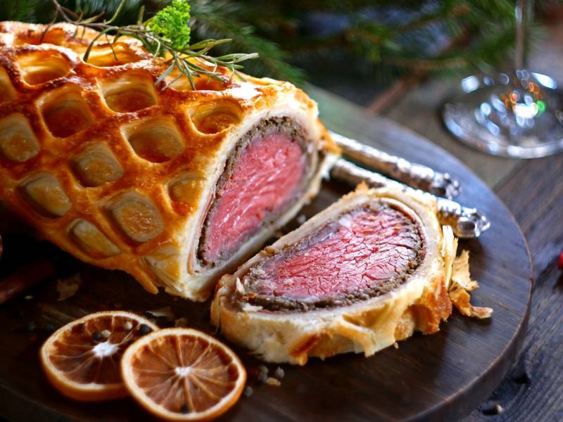 11. U međuvremenu podgrejte sos i servirajte bif velington narezan na kriške, sa sosom kao prilogom.