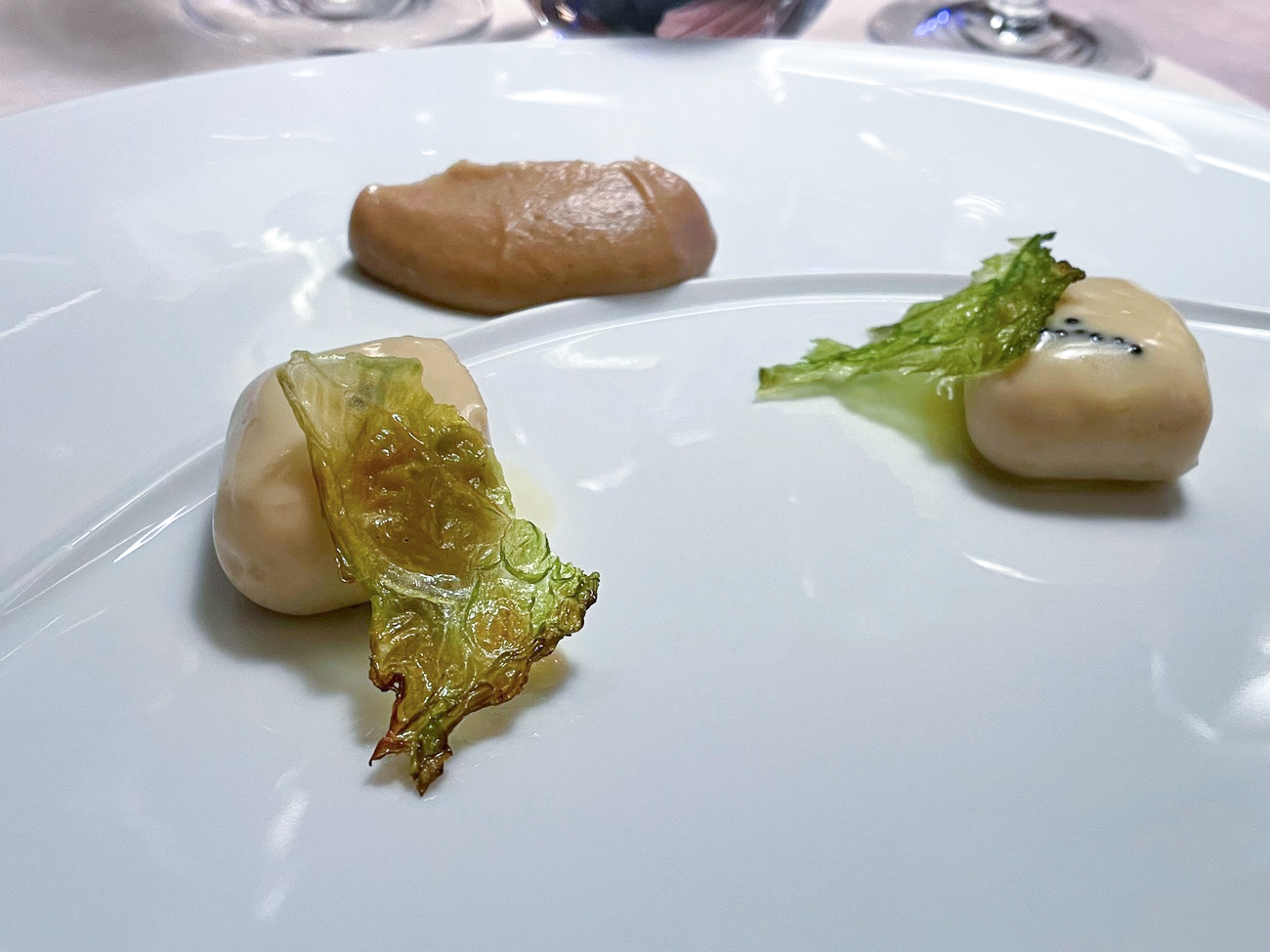 Plovidba Magellanom, što je i ustaljeni naziv degustacionih menija ovde, ovog puta je započela intrigantim pozdravom iz potpalublja - hrskavom kuglicom punjenom lososom sa listićem dragoljuba na vrhu, zalogaj koji je tačno i vrlo precizno nagovestio ono što je dalje, tokom večeri, usledilo.