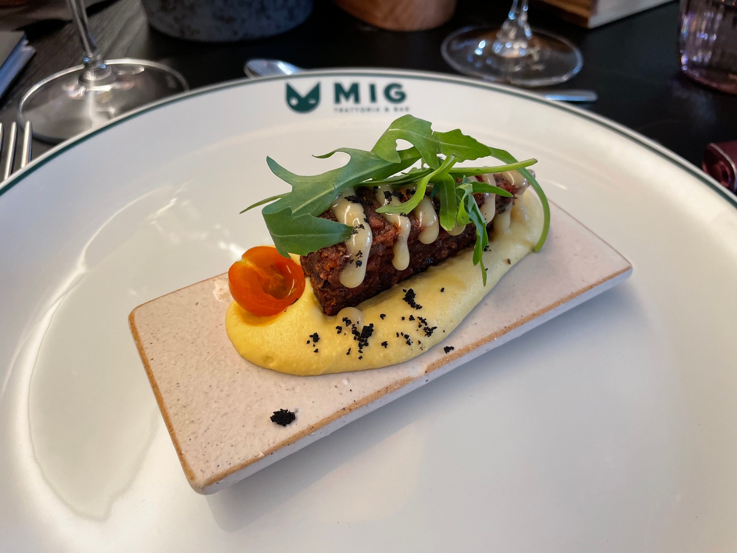 Ovde možete i da doručkujete, pa da probate i klasične italijanske sendviče – panini, od kojih ne propustite Entonijev Bordejnov sendvič sa mortadelom, mocarelom, senfom, mariniranim pečurkama i majonezom, ili da pređete odmah na nešto konkretno. Naša preporuka je više jela za deljenje, kako biste probali što više različitih stvari. MIG jeste restoran italijanske kuhinje, ali sa fokusom na lokalne proizvode i na ono najbolje što Srbija može da ponudi na tanjiru.