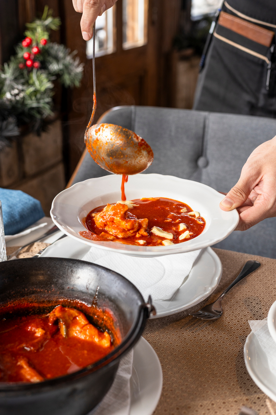 Fiš paprikaš kao zaštitini znakU Aqua Doriji služe se sva tri obroka – doručak, ručak i večera. Ovde će vas za početak dočekati vruća domaća pita, tople mekike, tolstolobik – mariniran i u pašteti, grilovani rtanjski sir, domaća turšija… I dok je doručak u toku pali se vatra ispod tri velika kotlića u kom se pravi fiš paprikaš, po kom je ova čarda i najpoznatija. Svaki dan 60 litara, nekada i više. Prave ga u raznim varijantama – klasičan ili filirani, poslužen uz tradicionalni turoš čuso – testo sa mladim sirom i kockicama prepržene slaninice.